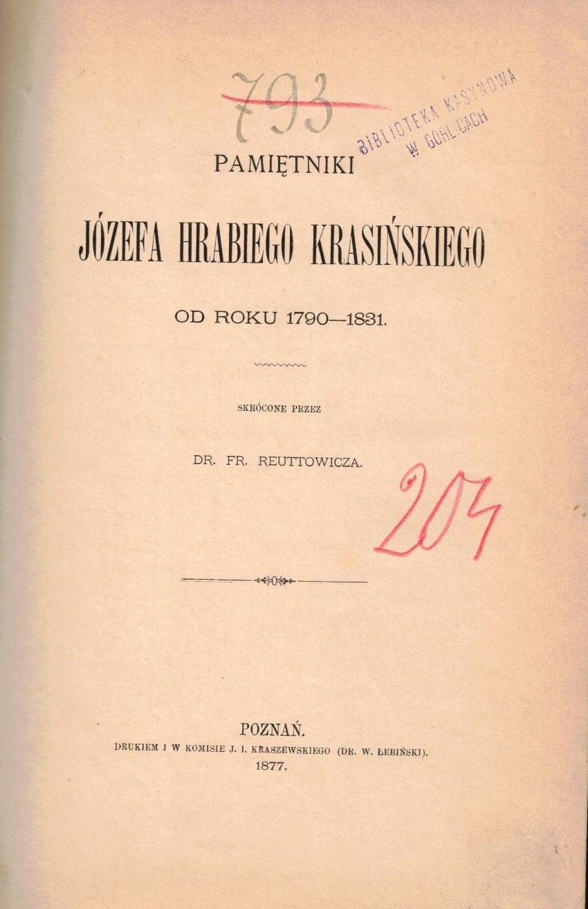 Pamiętniki Józefa hrabiego Krasińskiego od roku 1790-1831